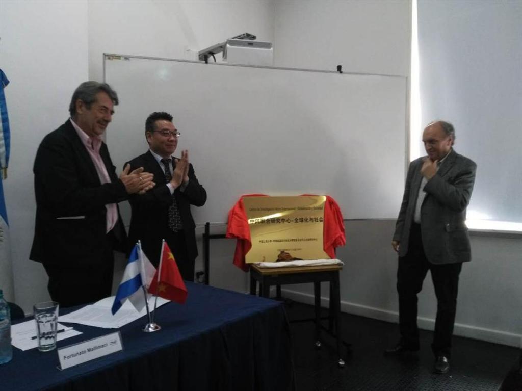 4月7日上午,罗书记与阿根廷国家科委劳工研究中心主任纳伊曼教授共同为中阿联合研究中心揭牌。在随后举行的联合研究中心首届学术报告会上,罗书记做了“实施教育国际化战略,建设世界一流大学”的学术报告,郭长刚教授则从全球史视角,做了“二十一世纪的全球抗议运动”的主旨演讲。