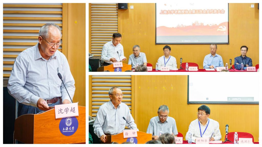 校党委书记成旦红代表学校党委和刘昌胜校长向本次大会的顺利召开表示热烈祝贺,向出席会议的上海市老教授协会的领导表示诚挚欢迎,向新当选的第五届理事会会长罗宏杰教授和全体老教授老同志致以亲切问候和美好祝愿。他说,在打赢防疫抗疫的大上海保卫战后,今天见到老教授们个个精神矍铄非常高兴。