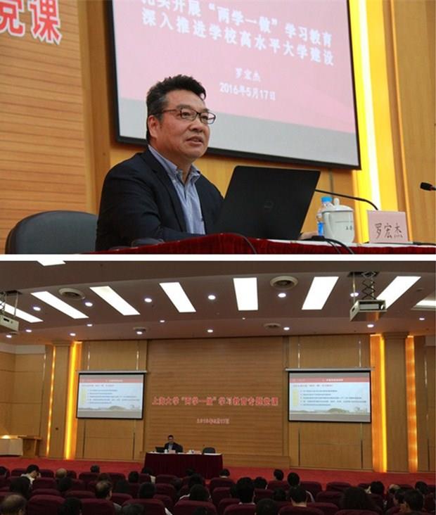 罗宏杰书记指出,学校全体党员要在思想上高度重视“两学一做”学习教育,把思想建设放在首位,把这项重要的政治工作、政治任务抓紧抓好,切实抓出成效。在学习教育过程中,全体党员要按照“带着问题学,针对问题改”的要求,结合实际查摆问题,把“两学一做”落实到切实解决问题上。党员领导干部要做学习教育的典范,要学得更多一些,更深一些,引导全体党员立标杆、作表率。基层党委和党总支要按照基层党建主体责任的要求,根据学校党委的总体部署,以高度的责任感、主动扎实和创造性地开展好学习教育。