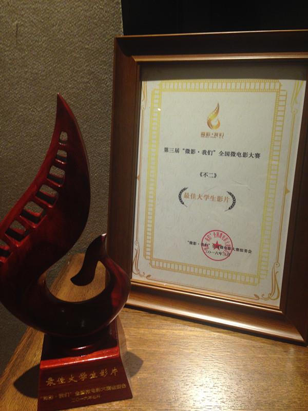 3月24日晚,由中国电影家协会和泰州市人民政府联合举办的第三届“微影·我们”全国微电影大赛颁奖礼在泰州大剧院隆重举行,11个奖项现场全部揭晓。上海电影学院电影MFA专业学生解雨的电影短片《不二》获得大学生竞赛单元最高奖项——最佳大学生影片奖。